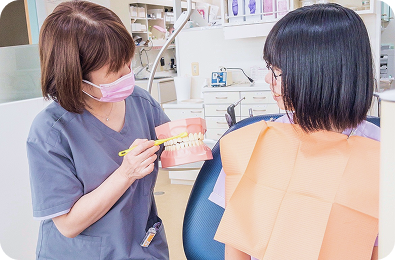 歯科衛生士は、むし歯や歯周病を予防する「歯科予防処置」や、歯科医師の治療の補助をする「歯科診療補助」、患者さんがより健康的なお口になるように歯磨きの方法や生活習慣の指導をする「歯科保健指導」の3つの業務を行う国家資格をもった専門職です。